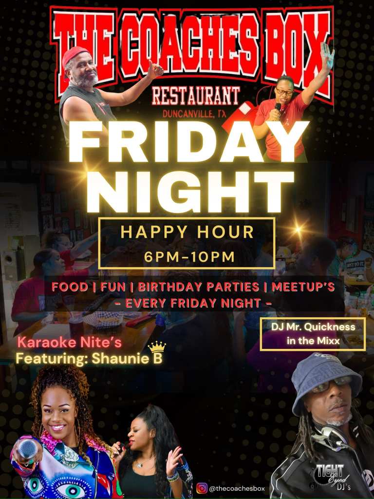 Friday Happy Hour @ The Coaches Box in Duncanville, TX | Every Friday