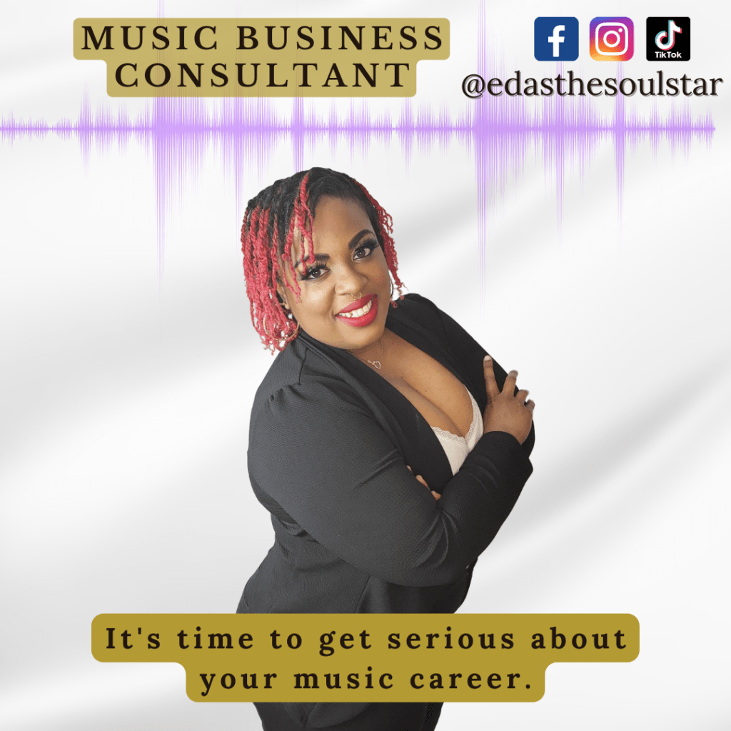 Hello, I’m eDas The Soul Star & I want to be your Music Business Consultant! My ultimate goal is to create a personalized artist development plan that includes career evaluation, image consulting, industry knowledge, branding, marketing tips, and social media management for each client.