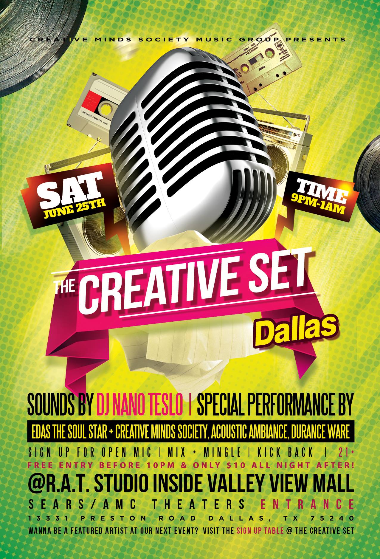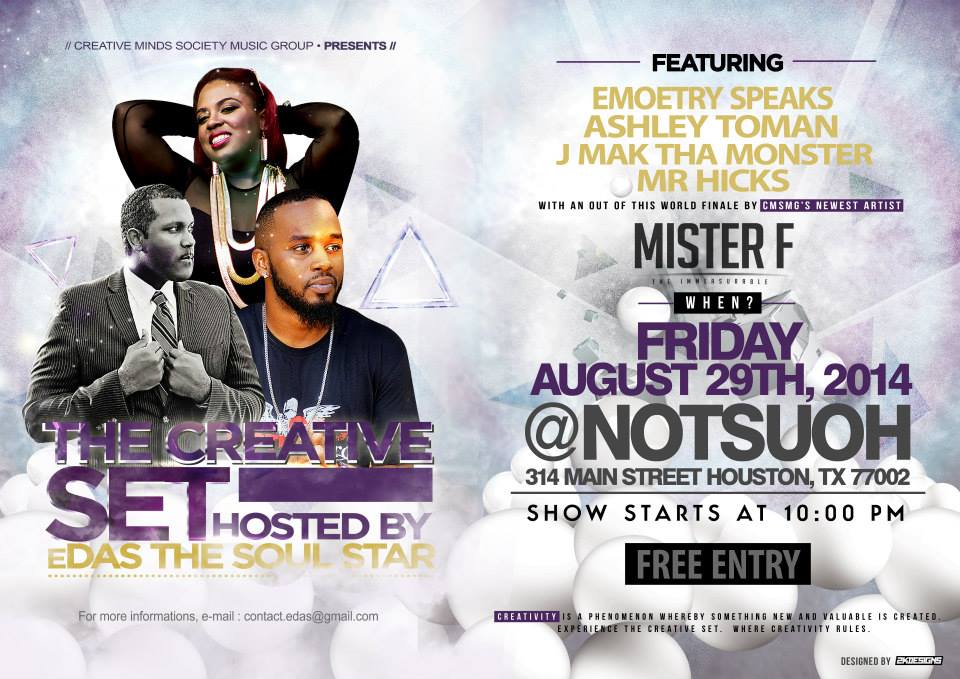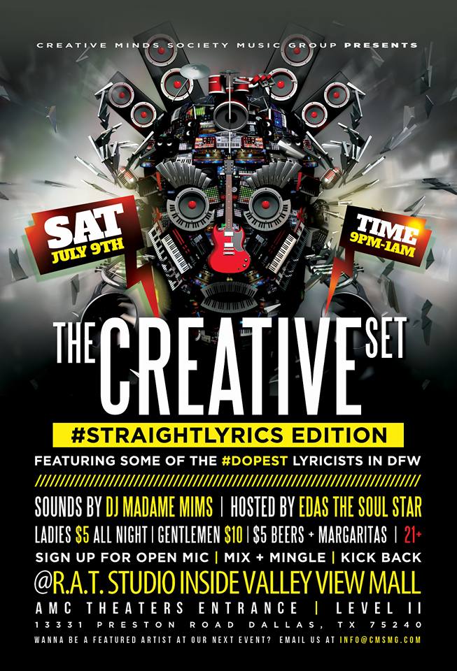 A Unique Showcase + Soiree Experience: The Creative Set offers an unparalleled experience for both artists and attendees. We create a relaxed atmosphere featuring fantastic DJs, live music, and positive vibes. We ensure the evening is not overcrowded with performers, allowing everyone to fully enjoy the party. At TCS, our mission is to help artists achieve their dreams. Participants receive more than just exposure; we provide genuine marketing support to elevate their brand. It’s a fantastic opportunity to have fun while simultaneously supporting DFW artists. Brought to you by CMS Music Group and supported by the legendary Tighteyed DJs, our events guarantee an unforgettable party filled with good vibes until the club closes.